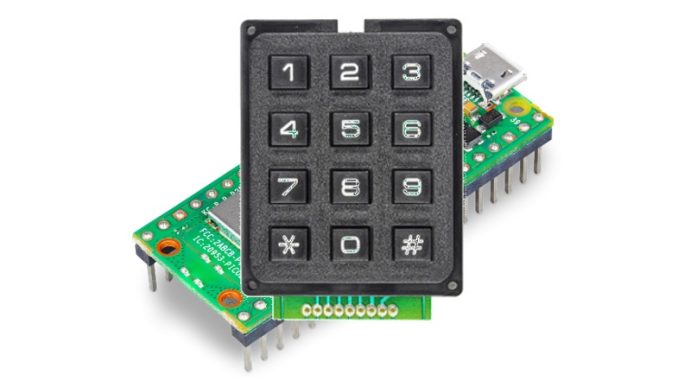Het 3×4 numerieke toetsenbord heeft zeven pinnen, de buitenste twee printgaten zijn niet aangesloten.